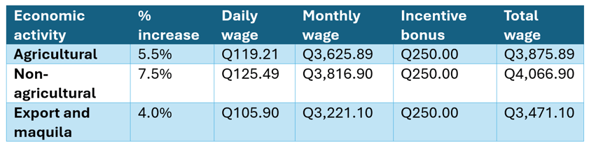 On Thursday, December 18, 2025, the new minimum wages applicable in Guatemala for 2026 were established. This followed a decision adopted by the National Wage Commission (CNS), a tripartite body composed of representatives of the Government, the employer sector, and the worker sector.
